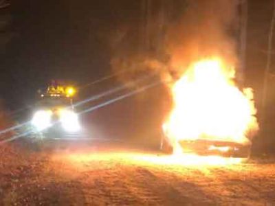 It took the fire department about 20 minutes to arrive after the initial 911 call. Hughes said as they sat and watched the car continue to burn, the motorist thanked them over and over for saving his life.