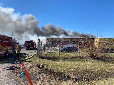At around 1:15 p.m. the crew was in the process of setting a pole and stringing the next section of wire. They paused their work to review the next phase of the job when they spotted large, black plumes of smoke billowing into the sky from the property a few hundred yards away. Two lineworkers hollered from their aloft buckets,“The building’s on fire!”