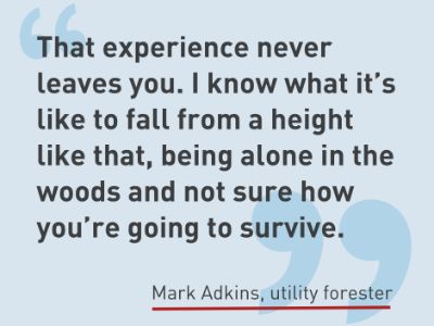 “That experience never leaves you,” Adkins said. “I know what it’s like to fall from a height like that, being alone in the woods and not sure how you’re going to survive.”