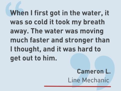 “When I first got in the water, it was so cold it took my breath away,” said Cameron. “The water was moving much faster and stronger than I thought, and it was hard to get out to him.”