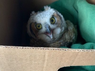 “I distracted the owl, who kept looking at me, while Rolando went around and came up behind the owl, collecting it in the blanket, and then we put it in a box I had brought with me,” Hutton said.