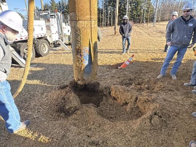 “A lot of our areas have a lot of rock,” Edwards said. “Sometimes you can dig around and look for a soft spot for an auger to go into the ground. Sometimes you can’t. Sometimes there’s only one place that pole can go.”